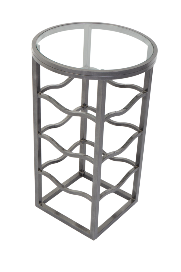 30x30mm square steel tube profile, powder coated. Features a 10mm thickness tempered clear glass top.