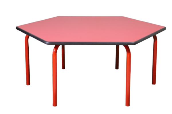 38mm dia round MS tube frame, powder coated. 18mm MDF melamine with rubber edge table top.